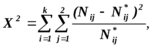Дальнейший анализ проводится в следующей последовательности. Подсчитывается доля объектов, у которых наблюдался исследуемый признак («да), от общего числа объектов f1= N1/N и доля объектов, у которых этот признак отсутствовал f2 = N2 /N. Если предположить, что сравниваемые группы не обнаруживают различий по рассматриваемому качественному признаку, то доля объектов, у которых наблюдался данный признак, в каждой группе составляло бы величину f1 от числа объектов в группе. Соответственно доля объектов, у которых отсутствовал данный качественный признак, составляло бы величину f2 от числа объектов в группе. Исходя из этих соображений рассчитываются ожидаемые численности объектов :