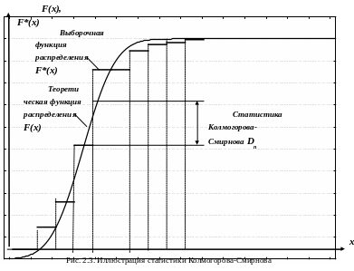 Статистика Колмогорова-Смирнова представляет собой следующую величину (рис. 2.3):