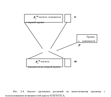 При использовании программного пакета STATISTICA расчета уровня значимости Р производится автоматически для конкретных значений наблюдаемых частот р1*,р2* и объемов выборок n, m производится автоматически. На рис. 3.4 приведен экран ввода данных и отображения результатов