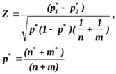 В математической статистике доказывается, что при достаточно больших объемах выборки величина Z имеет стандартное нормальное распределение с нулевым математическим ожиданием и единичной дисперсией. Таким образом, о статистически значимом различии выборочных частот можно говорить, если значение окажется достаточно большим.