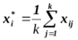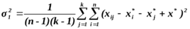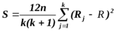 R = (k+1)/2- средний ранг, расcчитанный по всей совокупности значений rij i=1,...,ni, j=1,...,k,