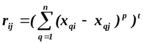 Первый шаг предполагает вычисление расстояний rij, i=1,...,n; j=1,..,k между всеми парами исследуемых объектов. Существуют различные подходы к вычислению расстояний rij.