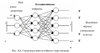 Структура связей в многослойном персептроне организована следующим образом (рис. 8.4).