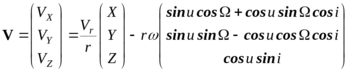 Вектор скорости КА в этой системе координат вычисляют по формулам