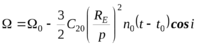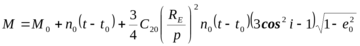 Модель вековых изменений элементов орбиты в функции интервала времени (t-t0 ) без учета торможения в атмосфере имеет вид