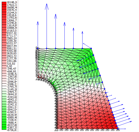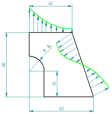 ля горизонтальных частей пластины (приложенные силы симметричны в соответствии с постановкой задачи и применением местной системы координат):
