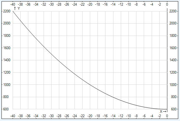 +600, где k – варьируемый параметр равный 1, координата х отсчитывается от правого и левого края верхней и нижней горизонтальной стороны до середины этой стороны и изменяется от 0 до 40.
