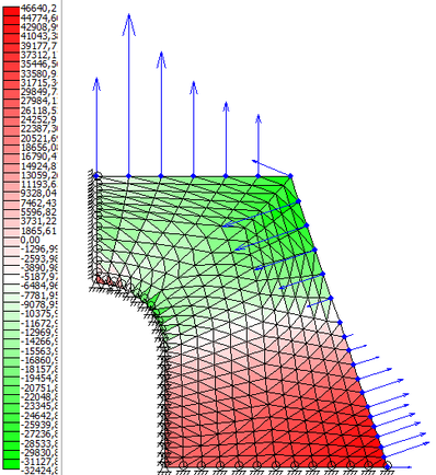 Перемещения рассчитываются для вершин КЭ, и для объема КЭ представляют некоторую плоскость, заданную по трем точкам (что не соответствует реальной ситуации). Функция перемещений представлена в виде интерполирующего полинома. При помощи этого полинома мы можем найти значение функции перемещения в любой выбранной точке.