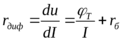 В идеализированной модели диода сопротивление rБ моделирует сопротивление области диода с низкой концентрацией примесей (базы), а также может учитывать сопротивление омических контактов между металлическими выводами диода и полупроводниковыми областями. Конденсатор Сбар моделирует барьерную емкость, а Сдф – диффузионную емкость p-n перехода. Дифференциальное сопротивление рассчитывается по формуле: