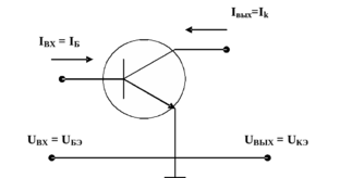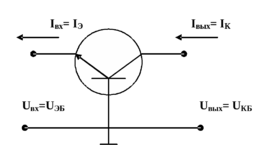 При данной схеме включения входным током является ток базы, а входным напряжением – напряжение между базой и эмиттером. Выходными являются ток коллектора и напряжение между коллектором и эмиттером.