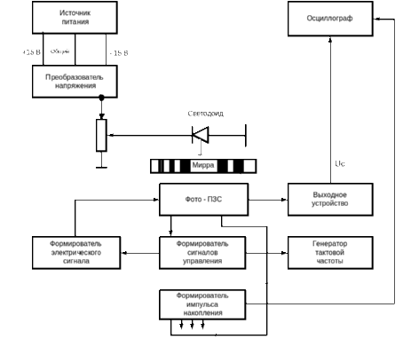 Функциональная схема лабораторной установки с использованием линейного фотоприемника К1200ЦЛ1 приведена на рисунке 1.