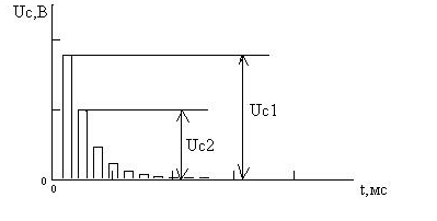 Измерьте по экрану осциллографа величину первого (входного Uс1) и второго (выходного Uс2) зарядовых пакетов и рассчитайте неэффективность переноса зарядов фотоПЗС: