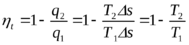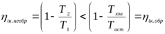 , т.е. условия обратимости цикла: Т2=Тхол, Т1=Тист. В случае необратимого цикла Тист>Т1 и Тхол<Т2. Тогда имеем: