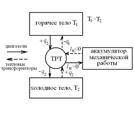 q2 – теплота, подводимая от холодного тела к ТРТ;