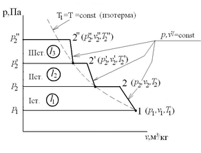 При этом в каждой ступени имеет место один и тот же политропический процесс сжатия: