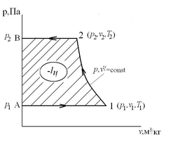 При расчете работы на привод компрессора принимается, что процесс сжатия газа – равновесный, вредное пространство отсутствует и потерями давления на всасывание и нагнетание газа можно пренебречь. Тогда цикл компрессора будет иметь вид: