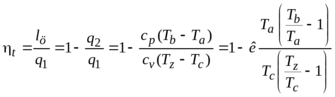 Таким образом, сравниваемые циклы заменяются на эквивалентные циклы Карно при использовании усредненных температур. Тогда термический кпд эквивалентного цикла Карно можно представить в виде: