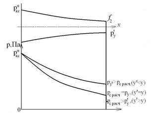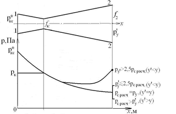 На нерасчетном режиме с перерасширением газа давление рс.расч меньше давления