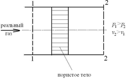 ) называется адиабатным дросселированием газа или пара. Этот процесс течения газа представлен на следующем рисунке: