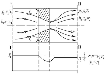 Процесс течения газа или пара через местное гидравлическое сопротивление, например, диафрагму в трубопроводе при отсутствии теплообмена (