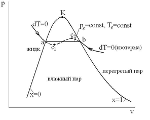 Для равновесного перехода «жидкость-пар» необходимо одновременно изменять и давление и температуру, поскольку двухфазная однокомпонентная ТС обладает одной степенью свободы.