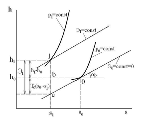 - энтропия рабочего тела при Т0 и р0, s1 – энтропия рабочего тела в исходном состоянии;