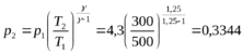 , имея начальные параметры p1=4,3 МПа и Т1=500К, до температуры Т2=300К. Определить давление p2 и удельный объем v2 воздуха в конце процесса расширения и составляющие уравнения первого закона термодинамики