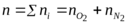 В сосуде при давлении р =2∙105 Па и температуре Т =5000 К находится газовая смесь из диазота (N2), кислорода (О) и дикислорода (О2). При этом количества входящих в нее веществ равны: