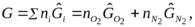 Рассчитать свободную энергию Гиббса газовой смеси (дикислорода и диазота):