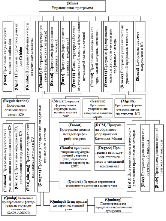 В настоящее время программа существует в двух вариантах: базовый вариант, представляющий собой одну единую программу, функционирующую преимущественно в соответствии с блок-схемой рис. 1 и продвинутый вариант, в котором система разделена на три самостоятельно работающих блока: препроцессор [2], расчетный блок, постпроцессор.