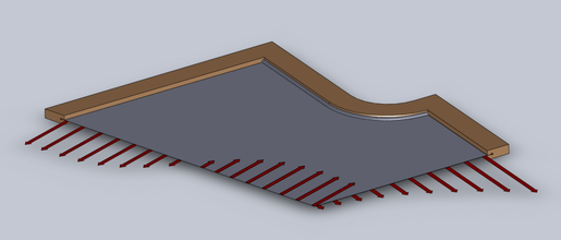 На рис. 1. пластина приварена по вырезу с закруглением и закреплена справа и слева на прямолинейных участках так, что имеет возможность скользить вдоль закреплений, не выходя, тем не менее, из них. К пластине приложены распределенные силы, показанные стрелками. Необходимо определить, разрушится ли пластина при действии этих сил или нет. Короче, необходимо решить задачу на прочность.