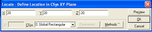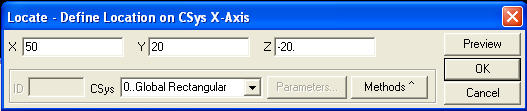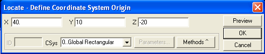 ервое окно, которое появится при выборе метода XY-Locate – окно определения начала системы координат (Define Coordinate System Origin). Заполняем его значениями координат начала, которые определяются в глобальной декартовой системе. Напоминание о том, какая система используется для определения положения этой точки, находится в окошке CSys.