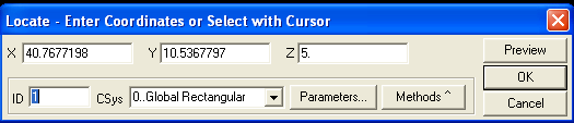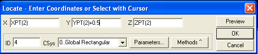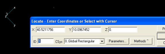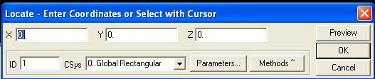 Мы рассмотрим здесь подробно метод XY Locate. В других методах последовательность окон, с помощью которых FEMAP требует от вас нужную информацию может несколько отличаться. Однако по названию окон можно догадаться, о чем вас спрашивают. В крайнем случае, всегда можно заглянуть в HELP.