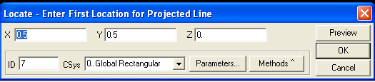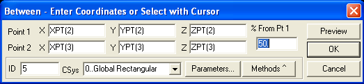 Обратите внимание на окошко % From Pt 1 (расстояние от точки 1 в процентах). Сейчас в этом окошке 50%, то есть новая точка будет создана точно посередине отрезка, соединяющего указанные точки. При необходимости вы можете изменить это соотношение. Кроме того, если вы сами этого не сделали, верните в окно CSys декартову систему. (Впрочем, неплохо, если вы заинтересуетесь, что произойдет, если этого не делать).