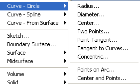 В этом подменю команды первой секции предназначены для построения дуг в рабочей плоскости, а команды второй для построения дуг, произвольно расположенных в пространстве.