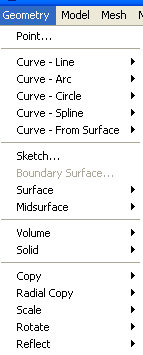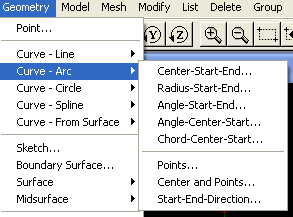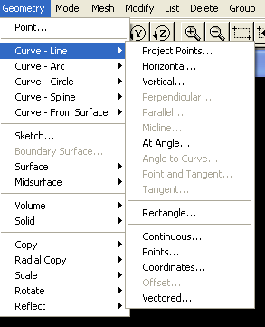 Для определения линий (Curve) в пункте меню Geometry имеется целых пять строчек. Причем каждая из них заканчивается черным треугольником-стрелочкой. Эта стрелочка говорит о том, что при выделении данной строки откроется еще одно подменю с различными возможностями.