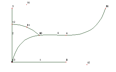Обратите внимание на то, что появились точки (на рисунке точки 14 и 15), которые вы не создавали. Это так называемые управляющие точки (Control Points), необходимые для определения касательных в крайних точках сплайна.