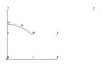 Необходимо сказать о некоей неоднозначности: из точки 6 дугу до пересечения с линией 1-3 можно провести как по часовой стрелке, так и против нее. Для FEMAP-а здесь никакой неоднозначности нет. Он всегда проводит дугу против часовой стрелки.