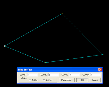 Теперь, после необходимого отступления, вернемся к главной теме – поверхностям. Рассмотрим команду GeometrySurfaceEdge Curves. Удалите поверхности и линии, которые вы успели создать, изучая метод Corners, и проведите четыре линии, ограничивающие будущую поверхность. Затем выполните команду GeometrySurfaceEdge Curves и укажите в окне Edge Surface эти линии, обходя их против часовой стрелки. Результат будет такой же, как и в методе Corners. Однако, если в качестве границ использовать кривые, то можно строить поверхности более сложной формы.