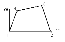 П очему так важен порядок указания узлов? Дело в том, что для каждого элемента создается своя собственная система координат – система координат элемента. Ось Xe этой системы координат (см рисунок) направлена от узла, указанного первым, к узлу, указанному вторым. Ось Ye лежит в плоскости элемента и направлена в ту сторону от оси Xe, в которой лежит элемент. Ось Ze образует с осями Xe и Ye правую тройку. Эта система координат элемента играет важную роль в формировании конечно-элементной модели. В чем именно состоит эта роль, рассматривается в теоретической части курса. Пока учтите, что порядок выбора узлов как раз и определяет эту столь важную систему координат элемента.