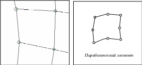 В этом элементе кроме узлов в углах элементов есть узлы на каждой его границе. Роль этих узлов в конечно-элементной модели крайне важна. Именно в узлах элемент соединяется с соседними элементами, и именно через узлы осуществляется силовое взаимодействие между элементами.