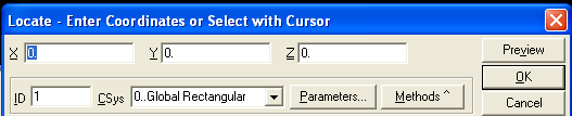 оздадим несколько узлов. Выполните для этого команду ModelNode (горячие клавиши Ctrl+N). На экране появляется окно очень похожее на то, которым мы пользовались при определении точки. И действительно процедура создания узла почти ничем не отличается от создания точки.