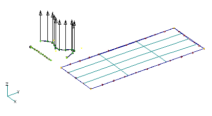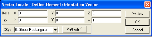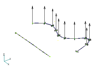 ри создании элементов типа Bar имеется всего один нюанс, но очень важный. Повторите команду MeshGeometryCurve, выберите вторую линию, укажите в списке сортаментов Bar, и, нажав OK, вы вместо готовых элементов получите еще один вопрос – диалоговый бокс для определения вектора ориентации сечения элемента. Здесь надо задать вектор, направленный так, как вы хотели бы направить ось Y элемента (ту ось Y, которую мы видели в окне Cross Section Definition). Надо сказать, что FEMAP не слишком придирчив, и, если вы укажете вектор, не перпендикулярный оси X (продольной оси) элемента, он сам спроецирует его на плоскость поперечного сечения. Здесь же направим ось Y элемента перпендикулярно рабочей плоскости, то есть в направлении глобальной оси Z.