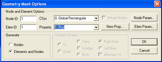 Кнопки Node Param и Elem Param дают вам возможность задать параметры для создаваемых узлов и элементов точно так же, как это делается при выполнении команд ModelNode и Model - Element.