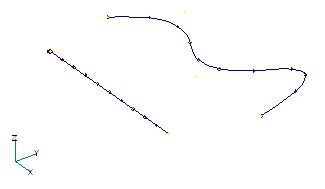К ак всегда начинается всё с небольшой подготовки. Для того, чтобы можно было выполнить эту команду (MeshGeometry - Curve), в файле модели уже должно кое-что иметься в наличии. Создайте пару линий, например, прямую и кривую, как на рисунке. Не будем создавать себе ненужные сложности и зададим эти линии, лежащими в рабочей плоскости (по умолчанию XY). На этих линиях выполните предварительную разметку сетки с помощью команды MeshMesh ControlSize Along Curve.