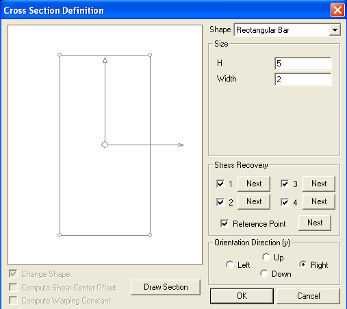 Еще одна польза от окна Cross Section Definition, появляющегося при нажатии кнопки Shape. В этом окне наглядно показаны оси Z и Y поперечного сечения стержня. Чаще всего ошибки при создании стержневых элементов возникают из-за неправильной ориентации сечения. Поэтому такая наглядная помощь очень уместна.