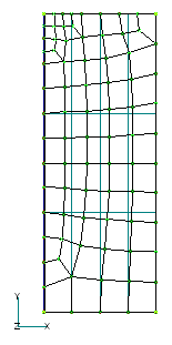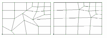 Если мы фиксируем позиции некоторых узлов этим способом, сеть не будет сглажена полностью. Элементы возле этих узлов все еще могут иметь значительные искажения. Для тренировки в использовании команды Smooth создайте конечно-элементную сетку с элементами явно неудачной формы. Что-нибудь вроде этого (левый рисунок). В