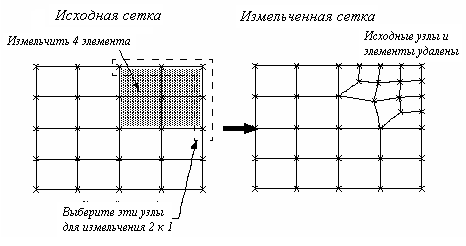 Опция Unrefine вызывает действие обратное Refine – укрупнение сетки.