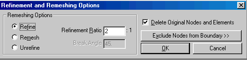 Если вы выберете опцию Refine, будут добавлены дополнительные узлы между узлами, которые мы выберем позднее. Опция Refinement Ratio определяет, как много узлов будет добавлено. Значение по умолчанию 2 означает, что будет создан один новый узел между каждым узлом, выбранным вами для измельчения. Выбор 3 добавит два узла и перестроит из одного три элемента.
