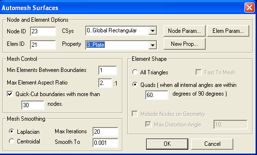 1) Min Elements Between Boundaries (минимальное количество элементов между границами) – если сетка, построенная FEMAP-ом получается слишком крупной, можно улучшить ее, указав в этом окошке нужное значение.